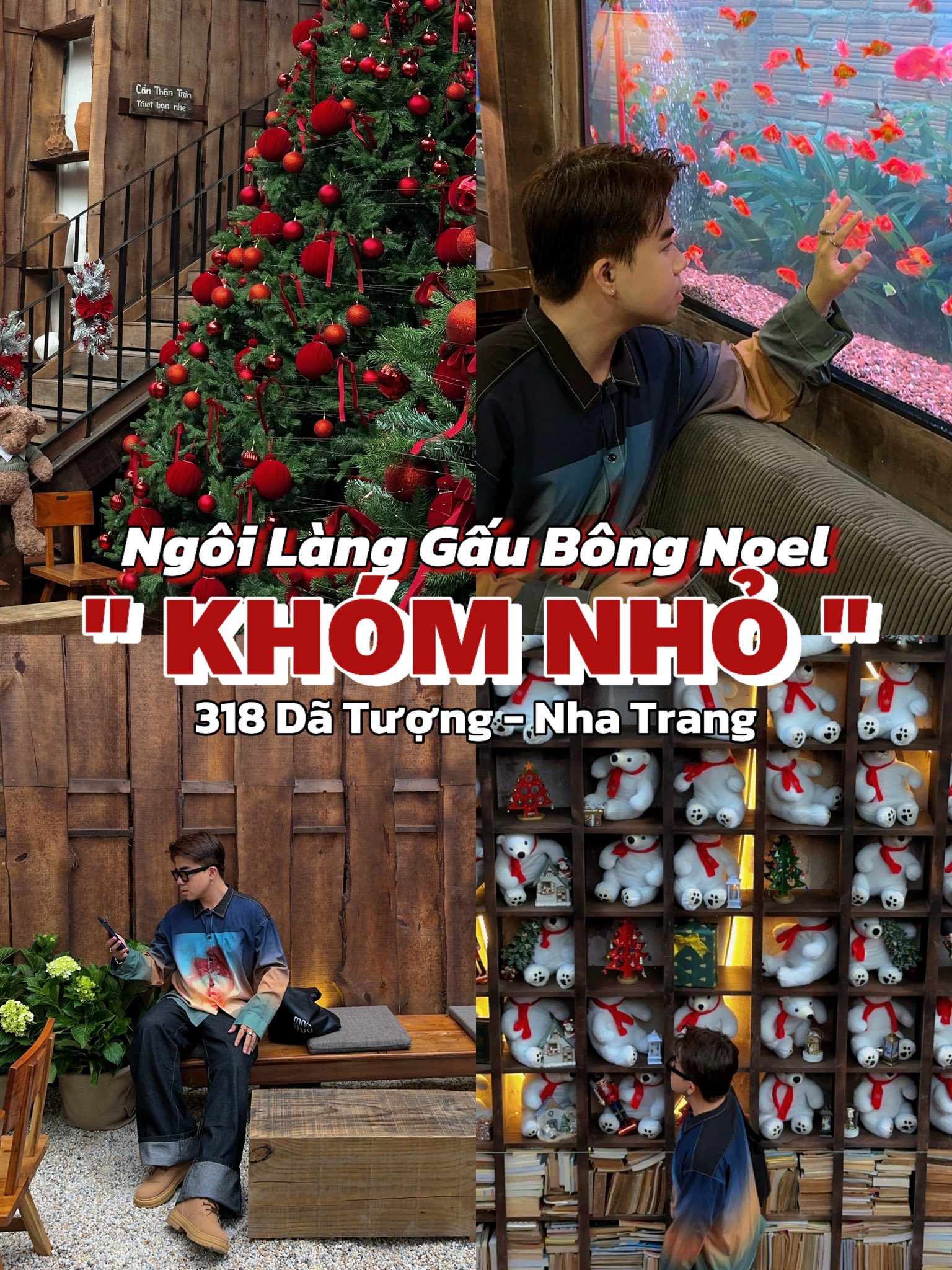 Khóm Nhỏ Coffee không gian rộng, nhiều góc check-in xinh lạ ( bức tường gấu, hồ cá, mái ngói... )