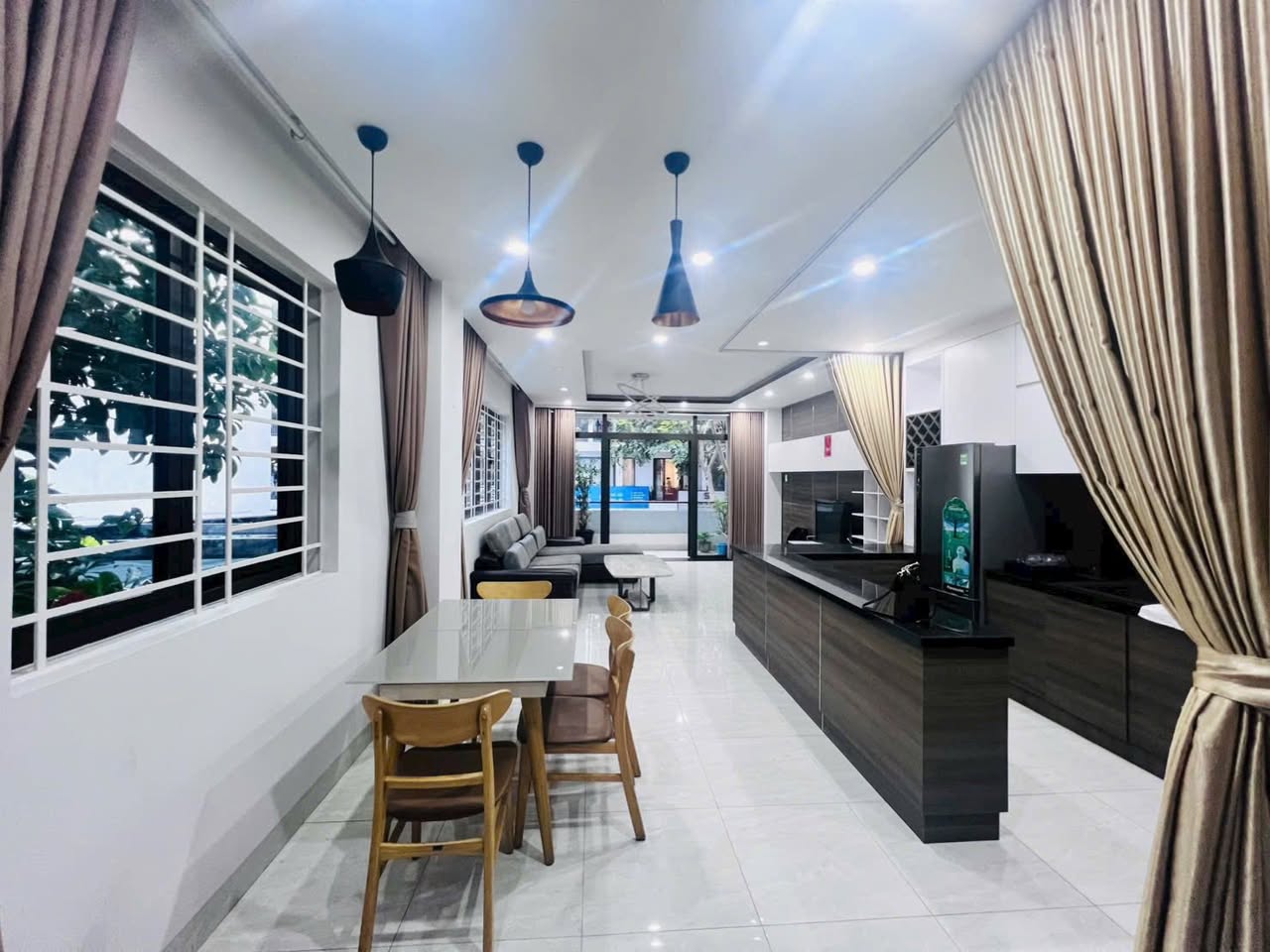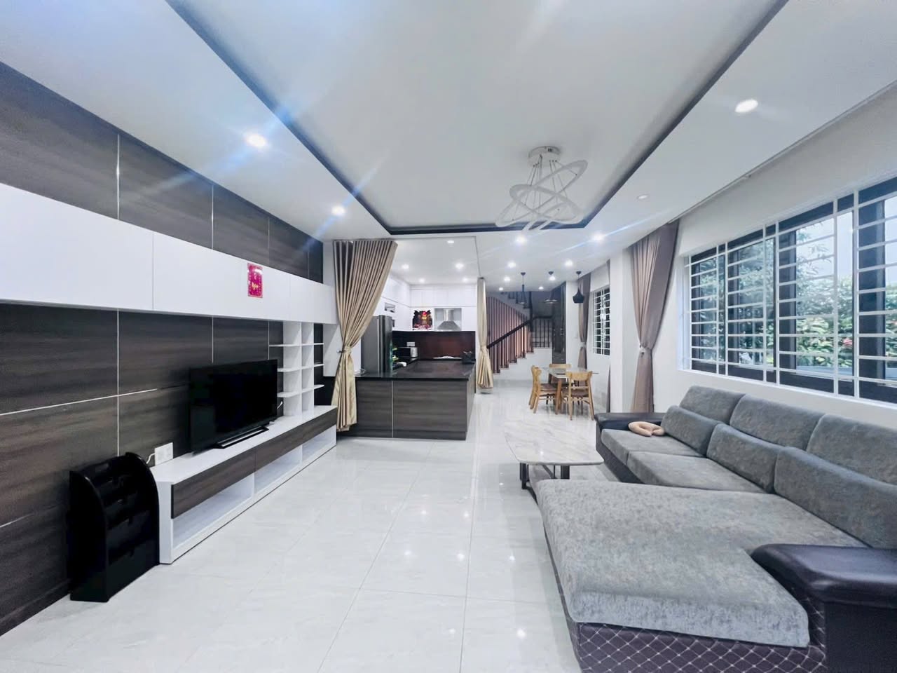 Tầng 1: Bếp + phòng khách + 1 phòng ngủ trống ( có máy lạnh) + 2 nhà vệ sinh