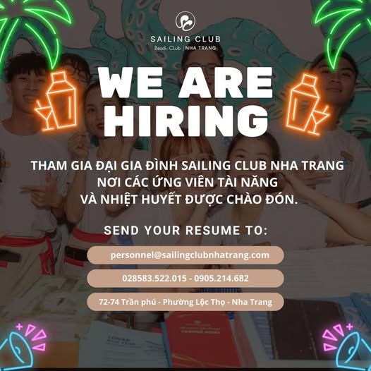 Sailing Club Nha Trang tuyển dụng nhân viên. Thu nhập từ 7tr trở lên, chế độ bhxh đúng Luật Lao động.