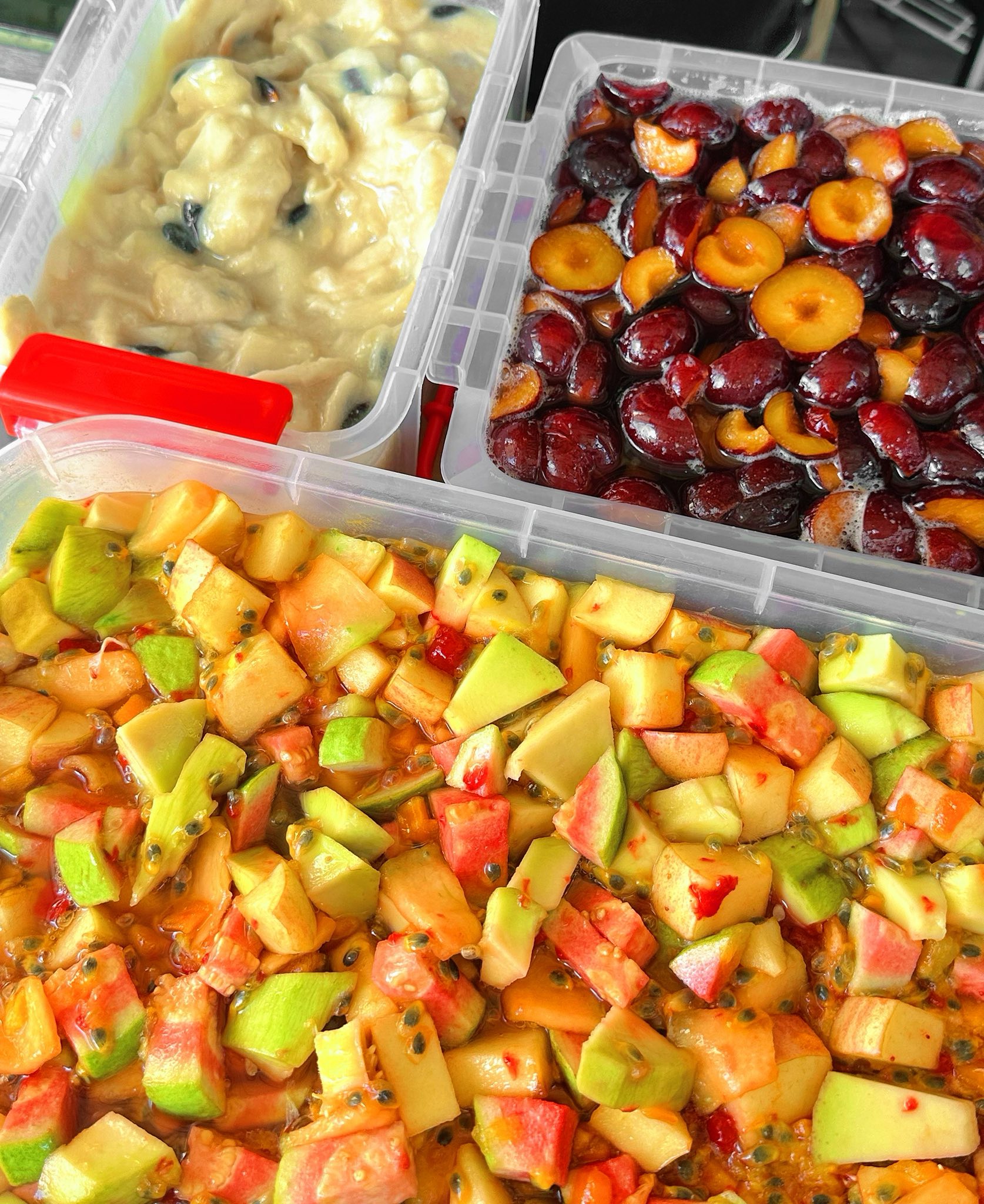 2 món signature Sanai Thái Trái Cây & Sabai Thái Xoài Leo : cốt trà thái thơm, trái cây tươi theo mùa đc gọt ngâm chua ngọt vừa ăn