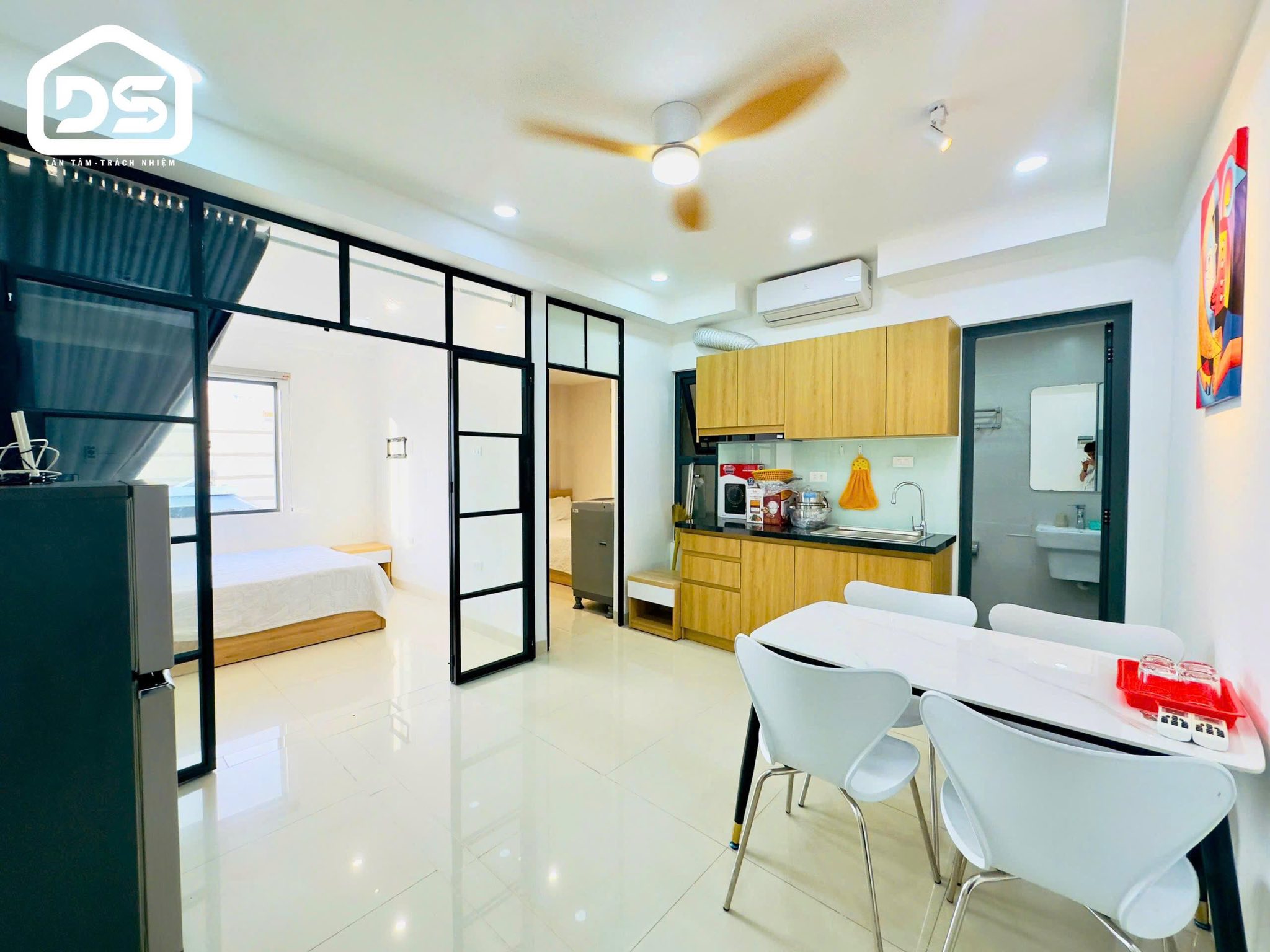 - Diện tích: 50m2 full nội thất máy giặt riêng