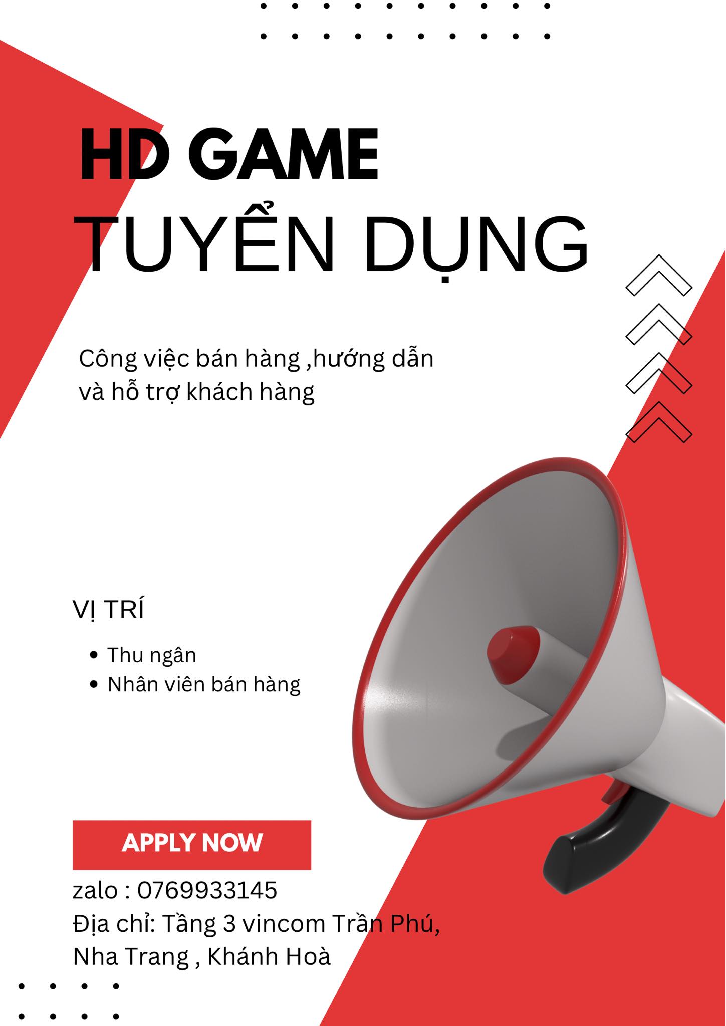 Địa điểm làm việc: Tầng 3 TTTM Vincom Trần Phú, Nha Trang, Khánh Hòa
