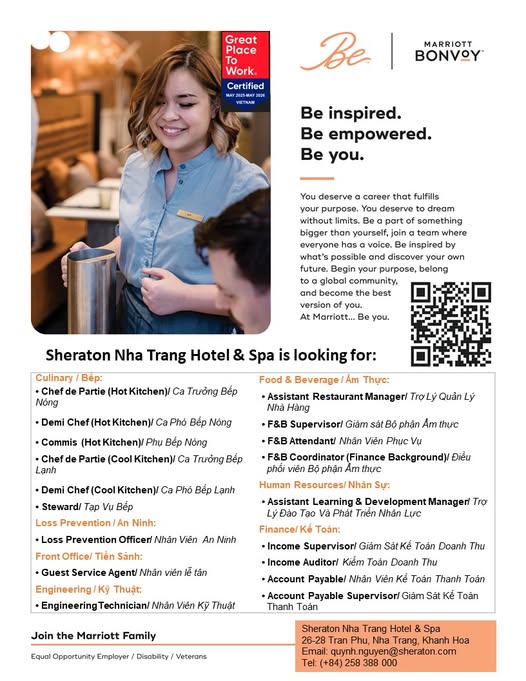 Nộp cv qua mail: quynh.nguyen@sheraton.com