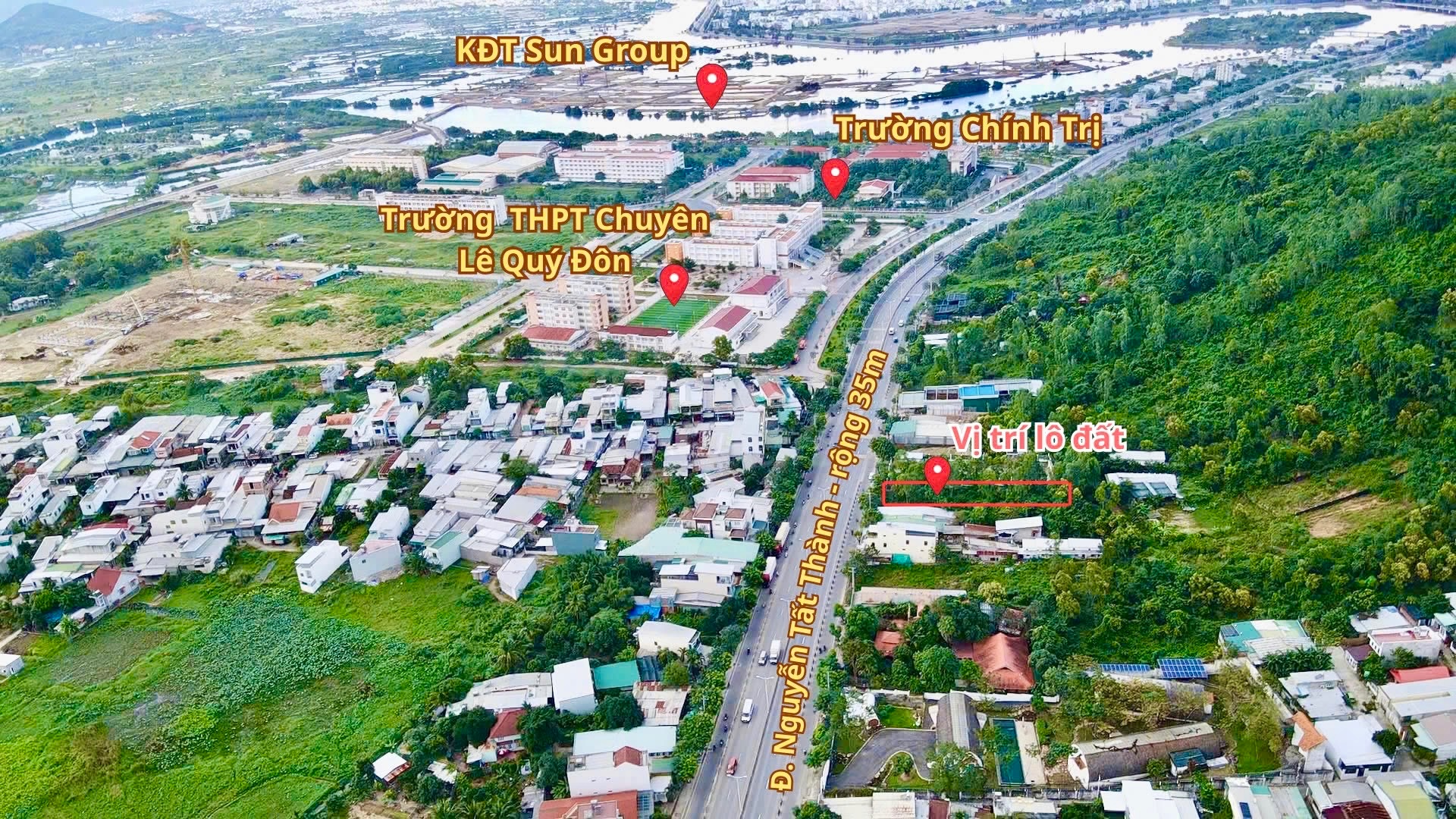 Lô đất mặt tiền Nguyễn Tất Thành Rộng 35m - gần trường chính Trị - các trường đại học - sổ hồng thổ cư