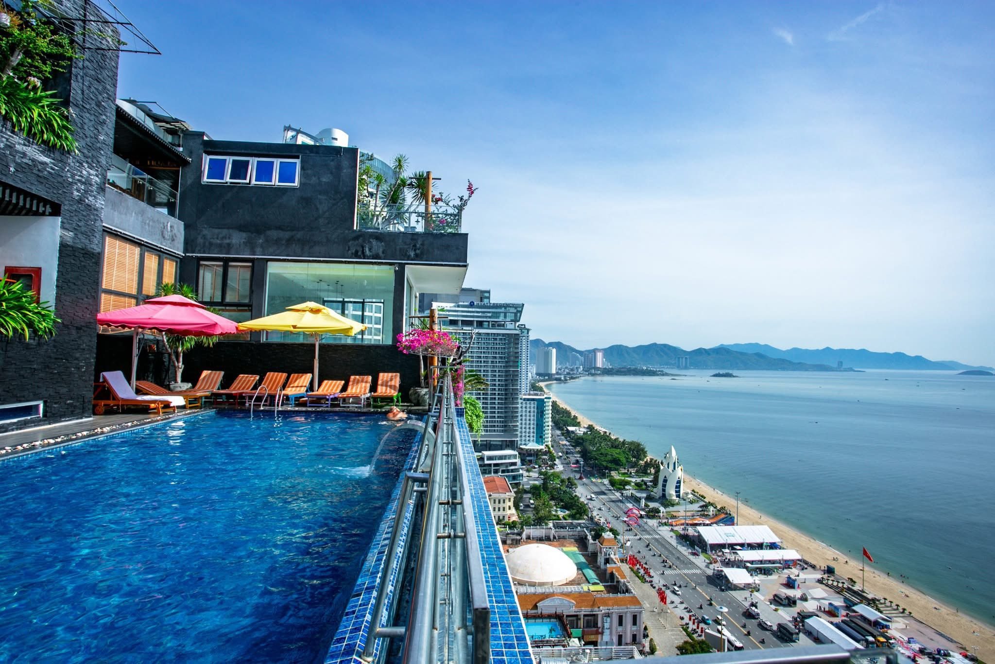 • Hồ bơi vô cực tầng thượng, view toàn cảnh biển Trần Phú siêu đẹp.
