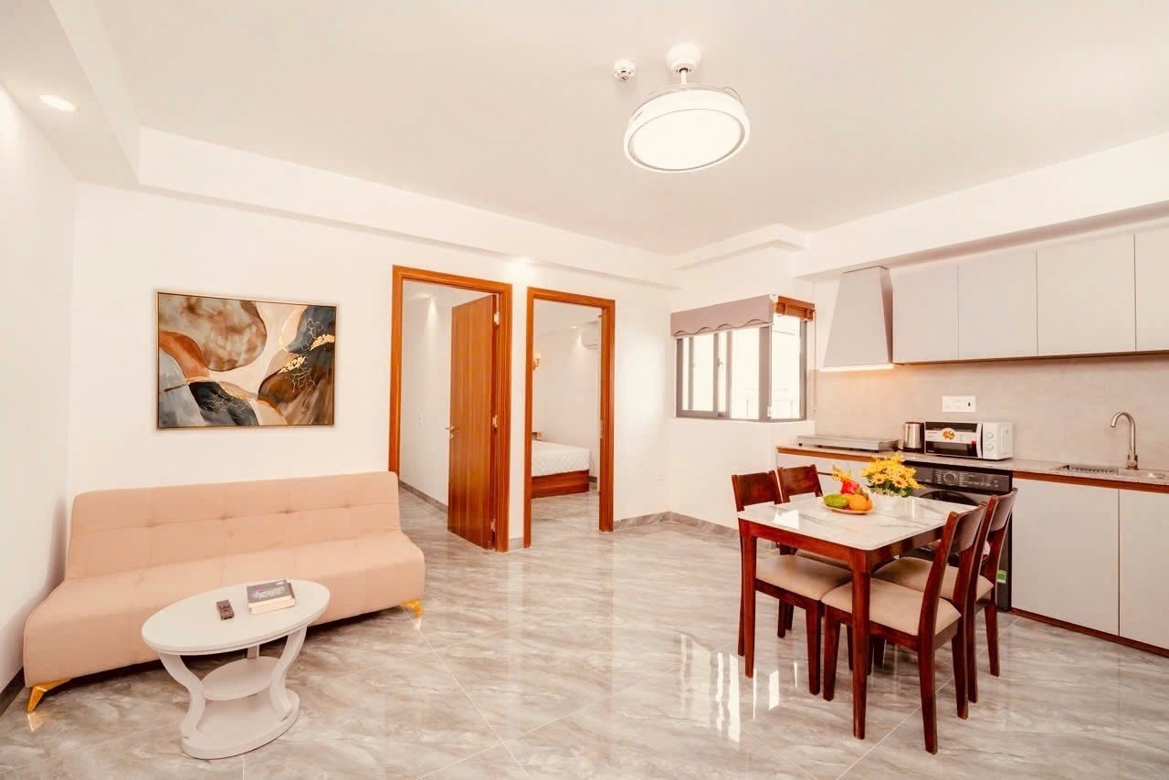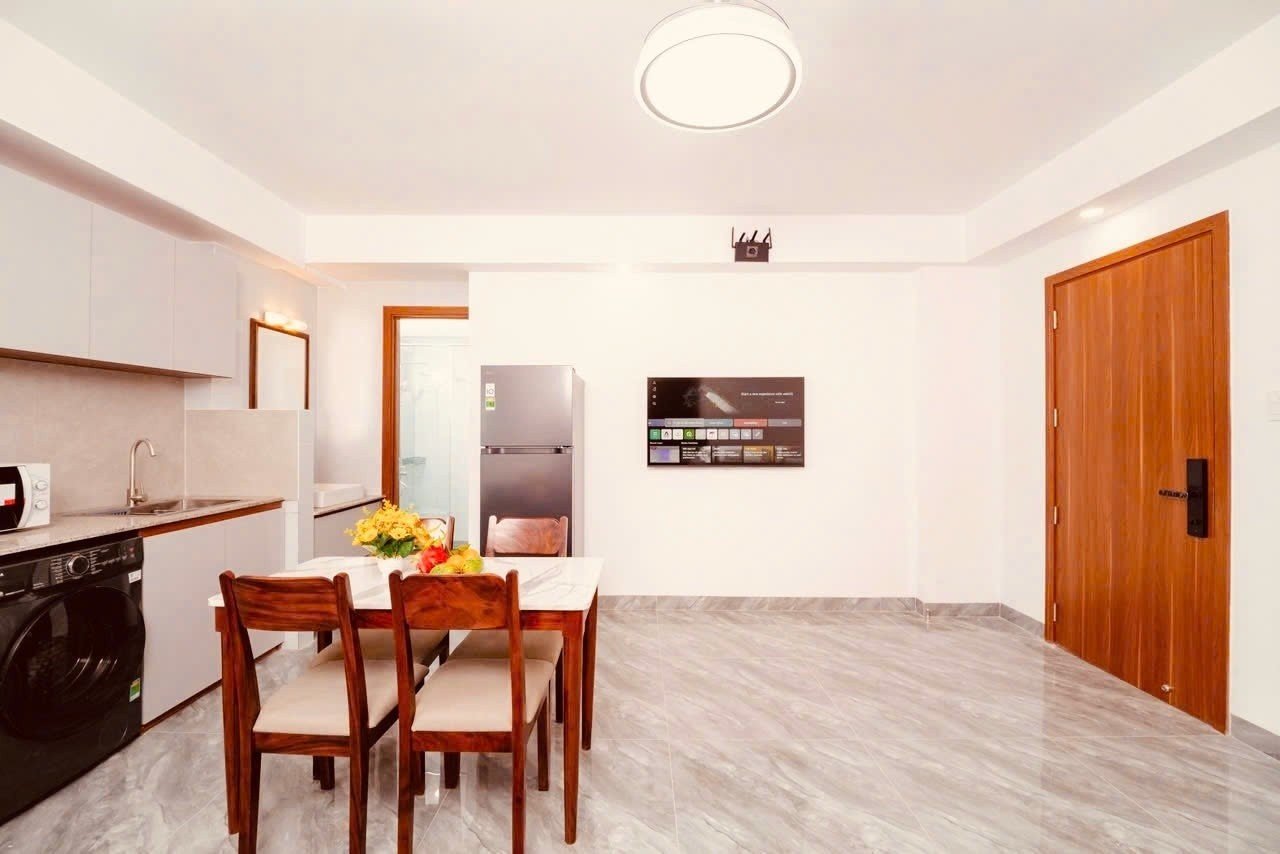 Diện tích: 55m² – có cửa sổ thoáng mát Kết cấu: 2 phòng ngủ Nội thất: Full như hình – dọn vào ở ngay Giờ giấc tự do Có thang máy Điện: 5.000đ/kWh Nước: 150.000đ/người Phí dịch vụ: 100.000đ Giá thuê: 15 triệu/tháng Cọc 1 – thanh toán 1
